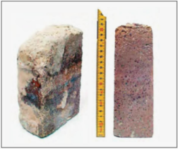 圖2顯示了鎂尖晶石磚,由于鹽分滲入導(dǎo)致的致密化作用,使得沿著致密化層出現(xiàn)了裂縫。使用飛灰和其他摻合料也會導(dǎo)致極其不均勻的燃燒工況