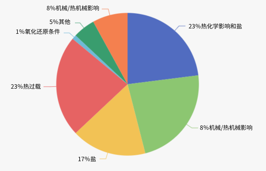 由于化學(xué)因素、滲透作用、局部熱過載以及氧化還原變化,導(dǎo)致結(jié)皮條件發(fā)生變化和磚結(jié)構(gòu)承受的應(yīng)力增加。目前的研究表明,所有的磨損情況原因如下(圖3):