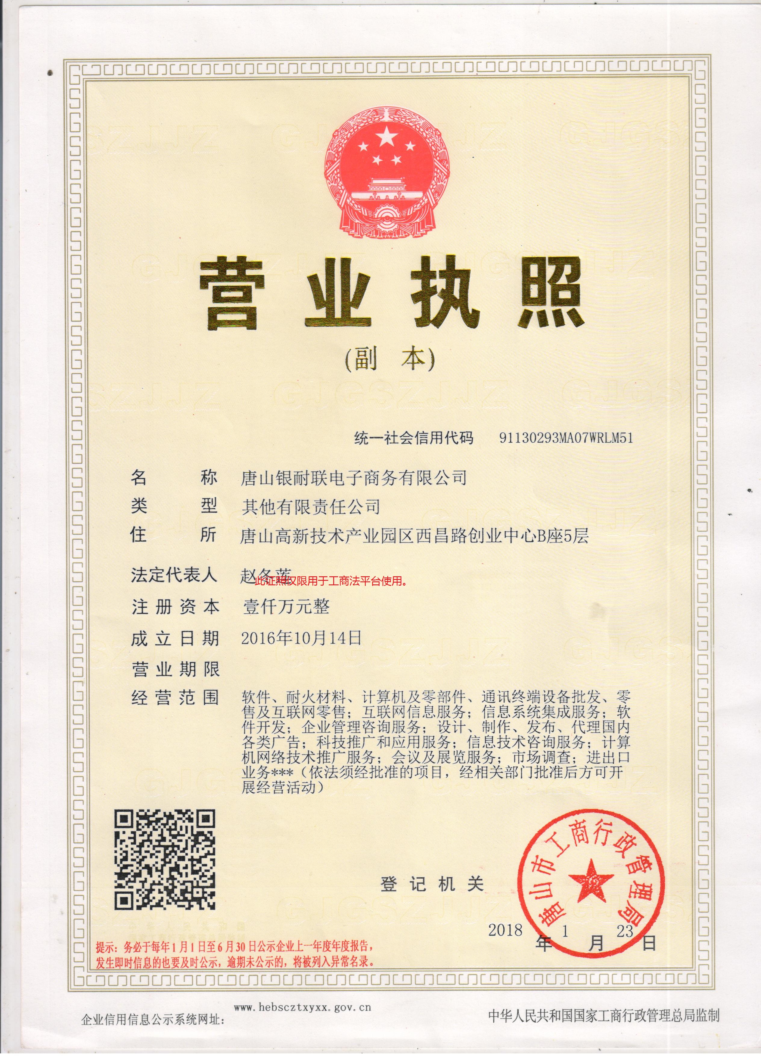 唐山銀耐聯(lián)電子商務(wù)有限公司